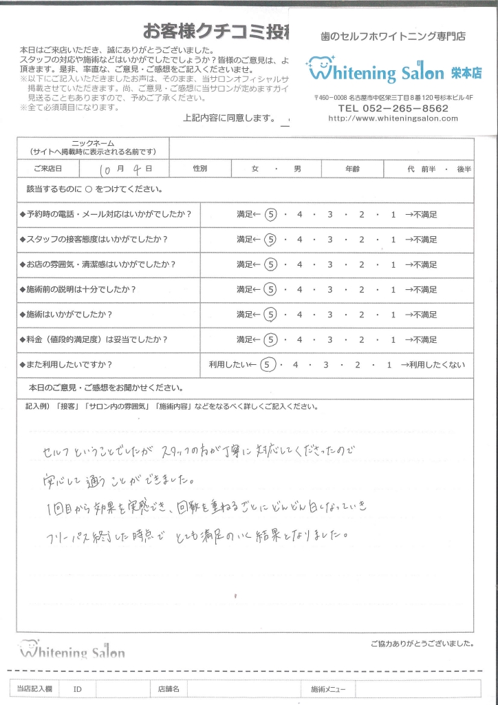 初めてのホワイトニングで年齢的にもすごく不安でしたが、初回から