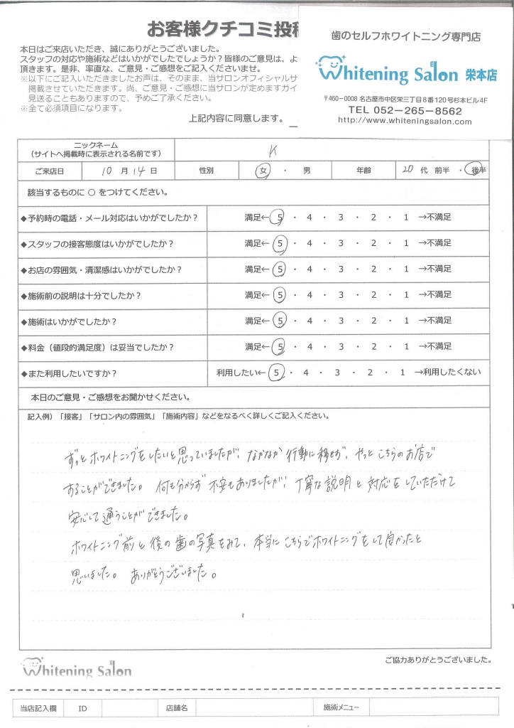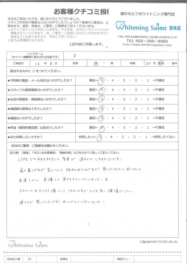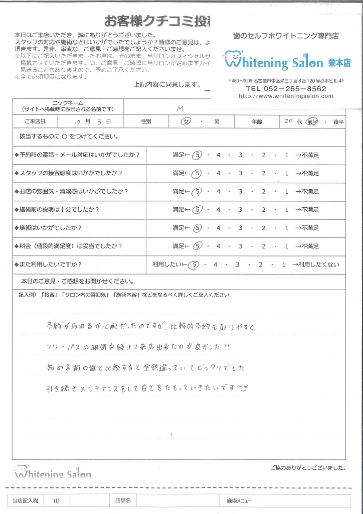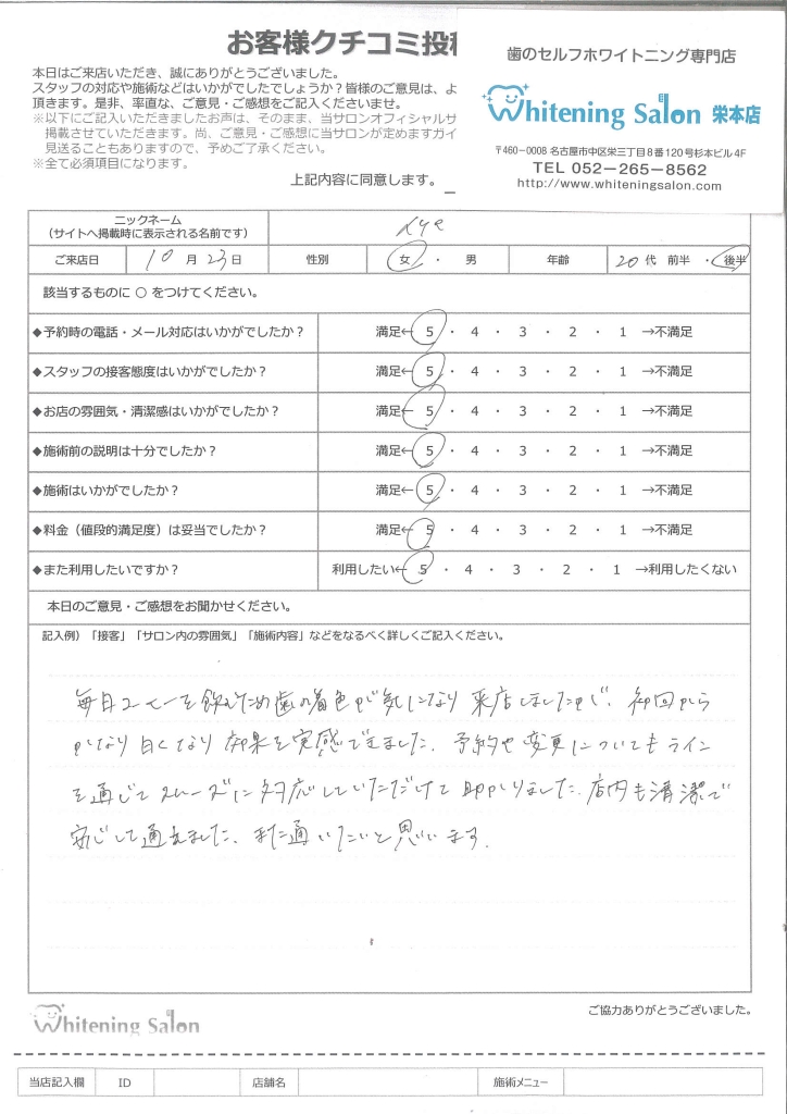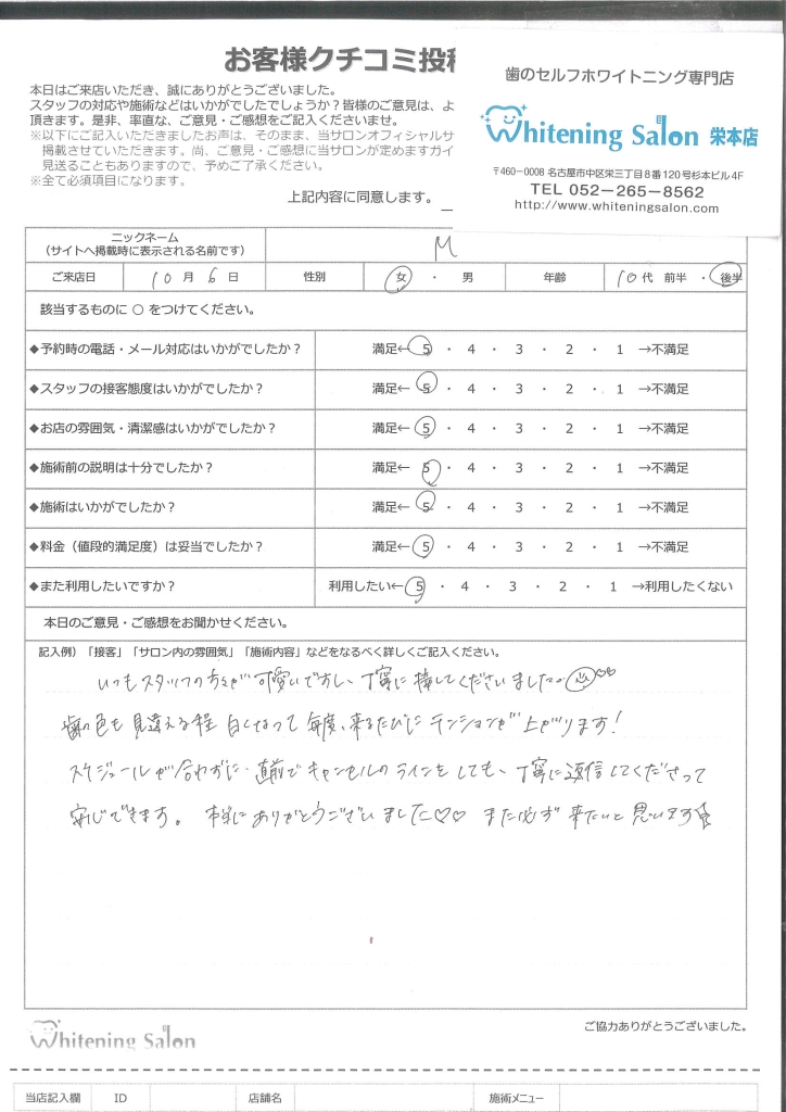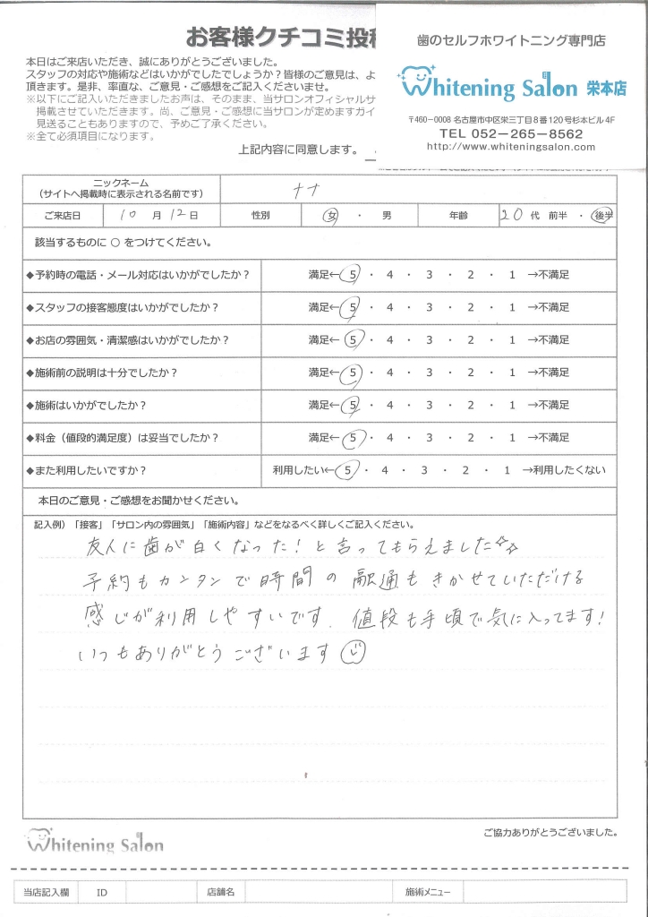 またホワイトニングをする際はこちらのお店を利用したいです!