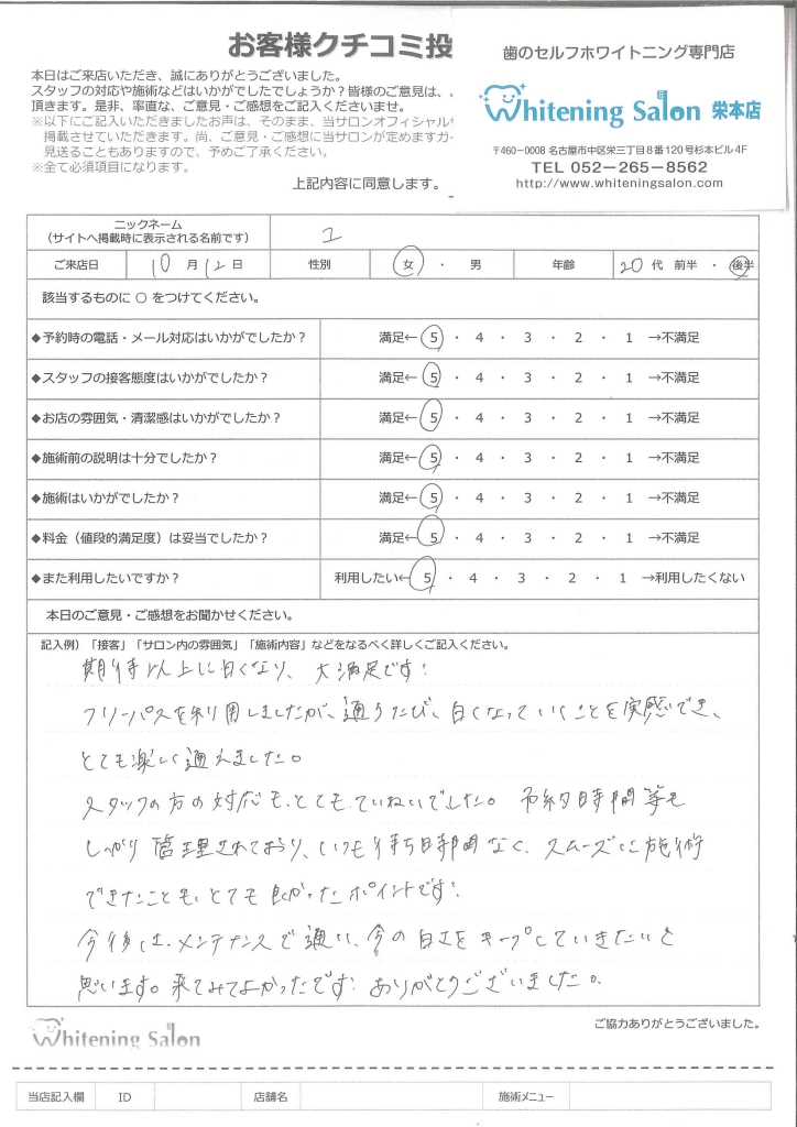 フリーパスを全て終えて、自分が思っていたよりも歯が白くなってすごくうれしいです!!