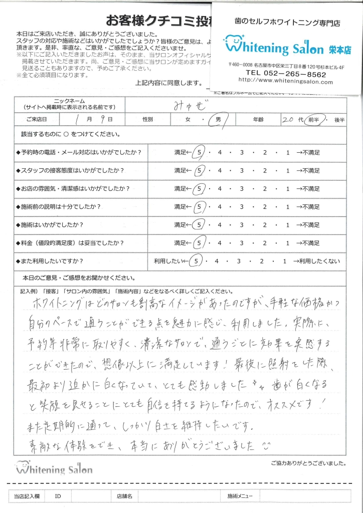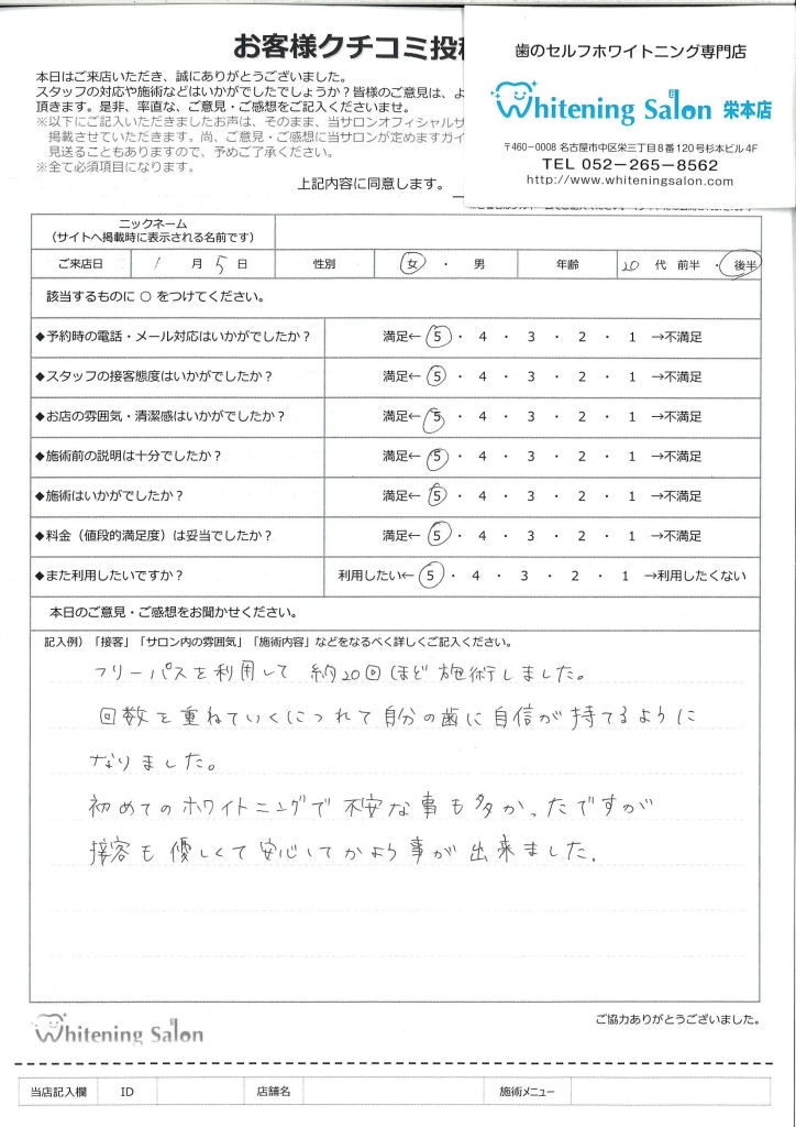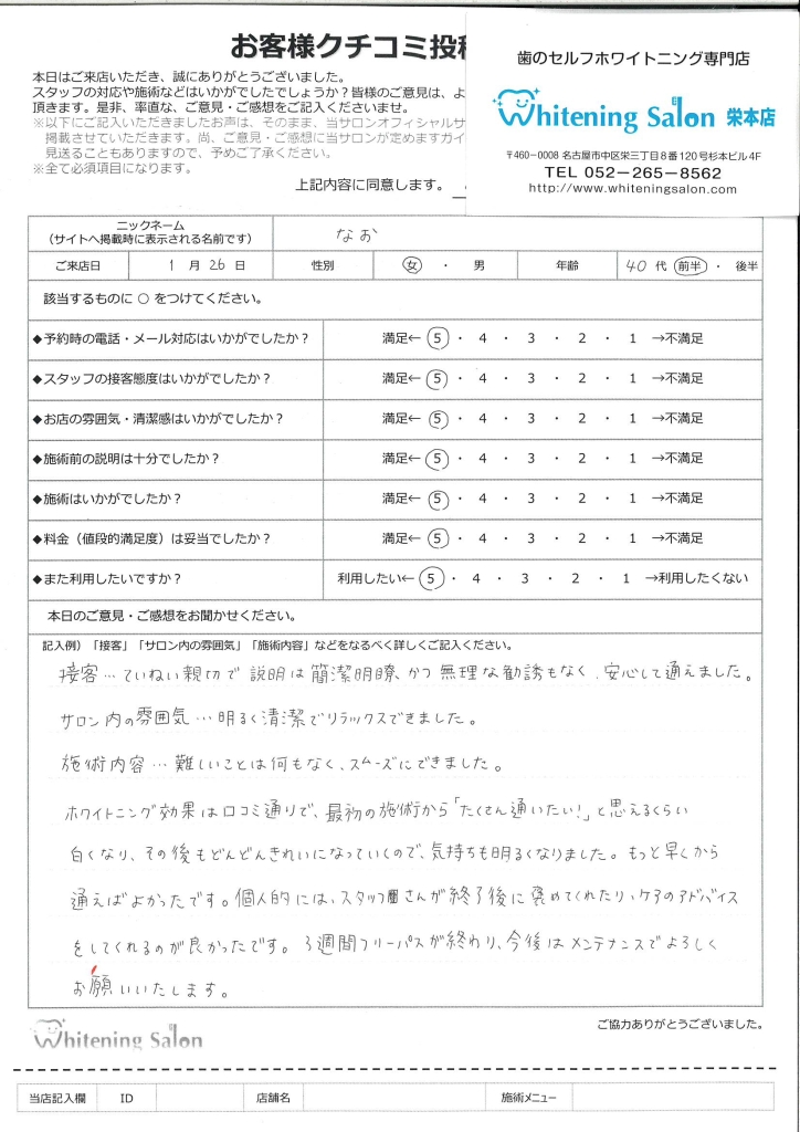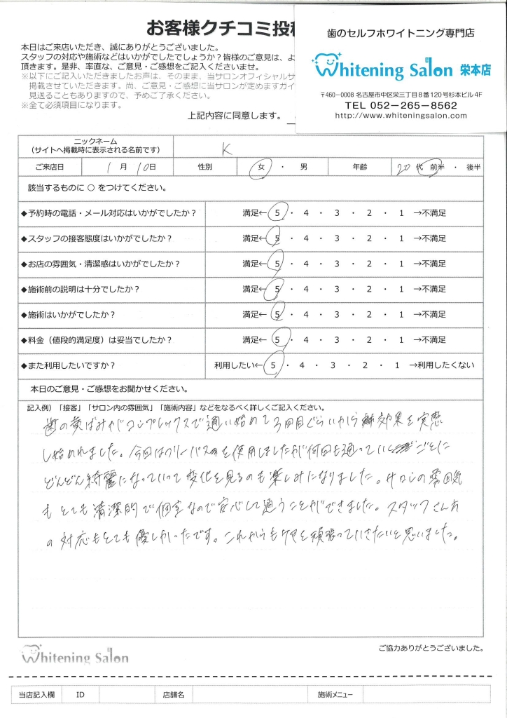 接客やお店の雰囲気もよくて、安心して通うことが出来ました。
