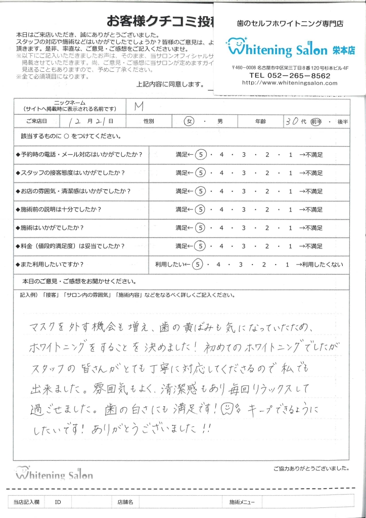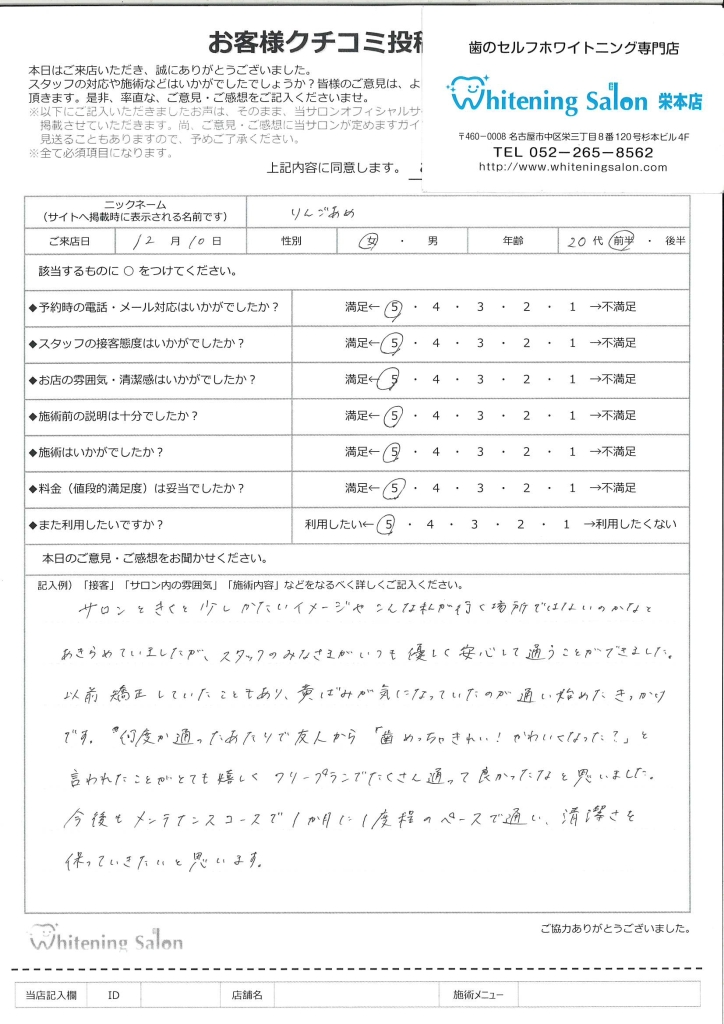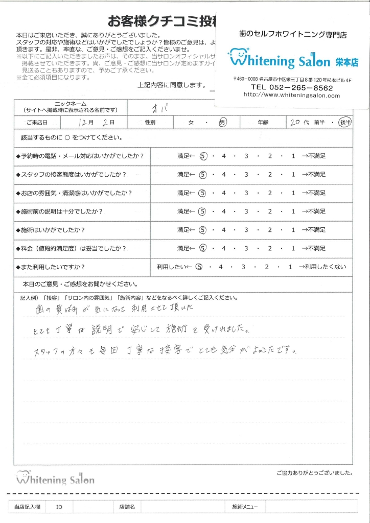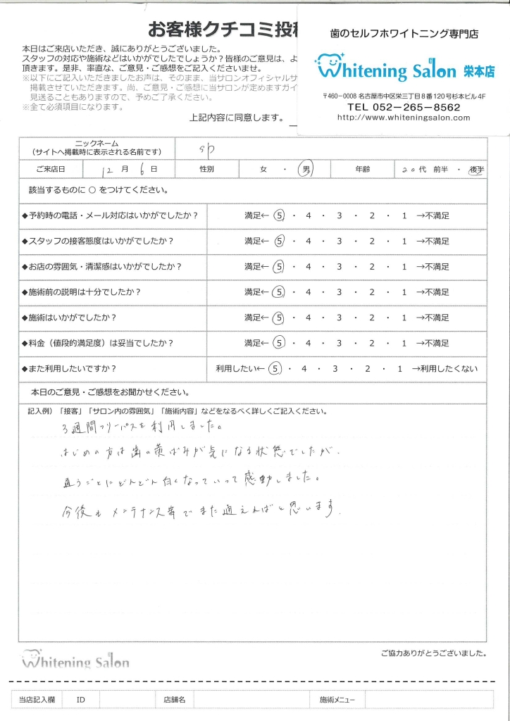 またホワイトニングをする際はこちらのお店を利用したいです!