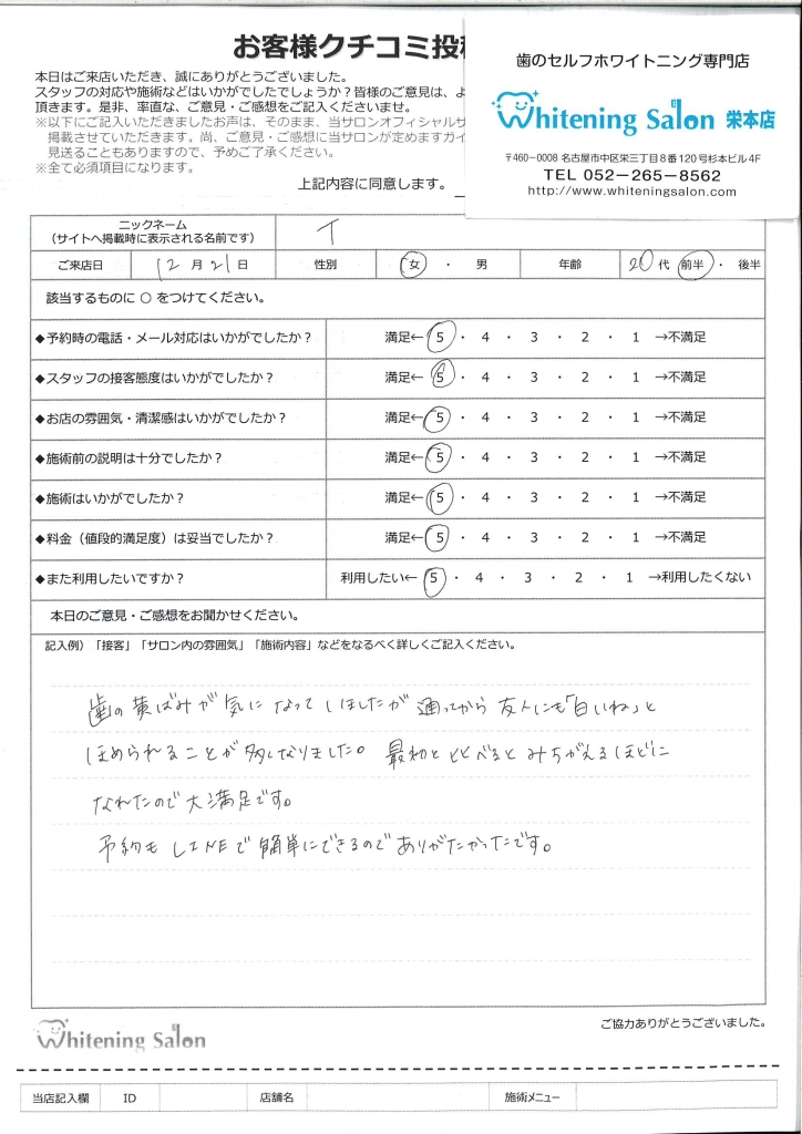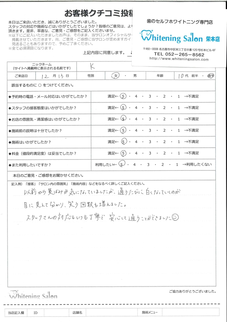 続けて通ううちに歯の黄ばみが取れていくのが分かり、本当に嬉しかったです。