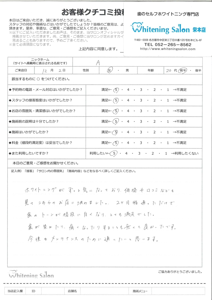 明るくなったことがよく分かり、ホワイトニングをしてよかったと思えました。