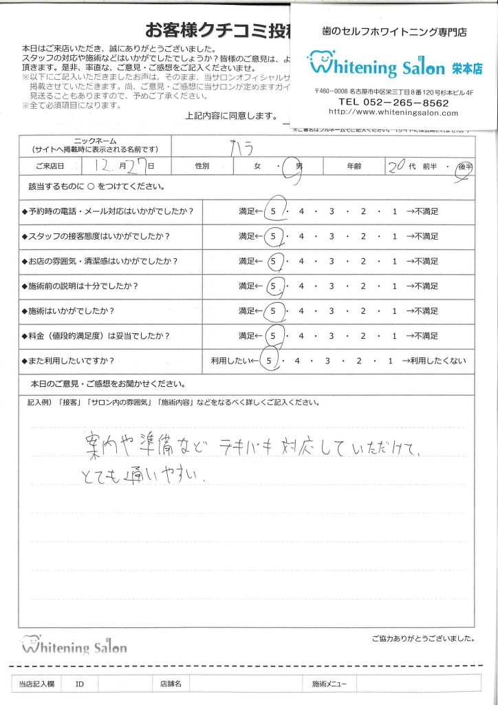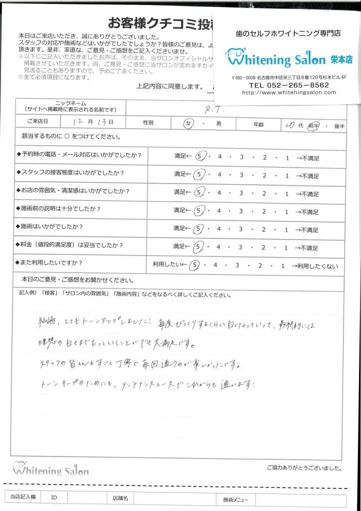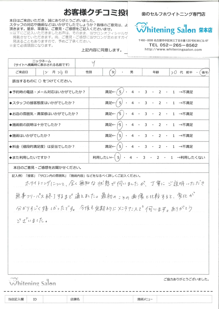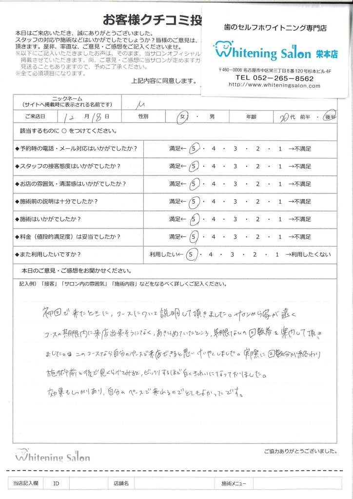 接客やお店の雰囲気もよくて、安心して通うことが出来ました。