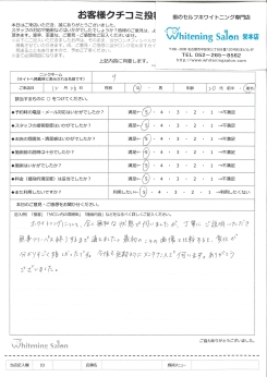 満足のいく白さまで戻すことができました。スタッフの方の接客や雰囲気も