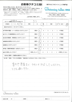 ホワイトニングについて、全く無知な状態で伺いましたが、丁寧にご説明いただき